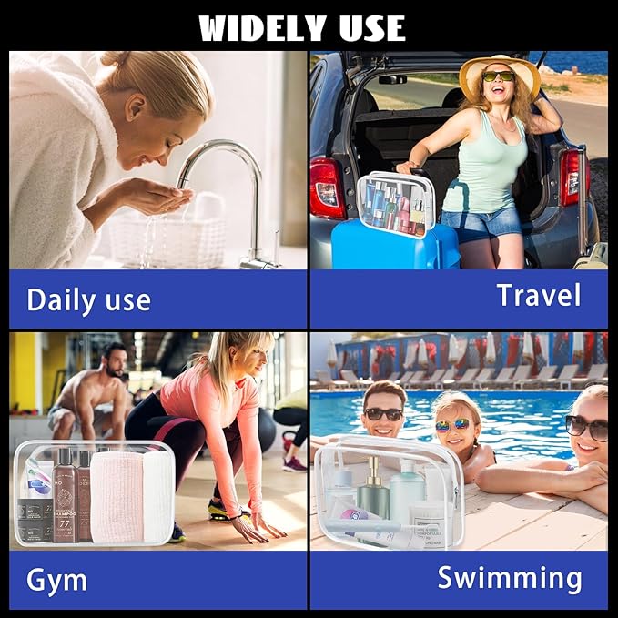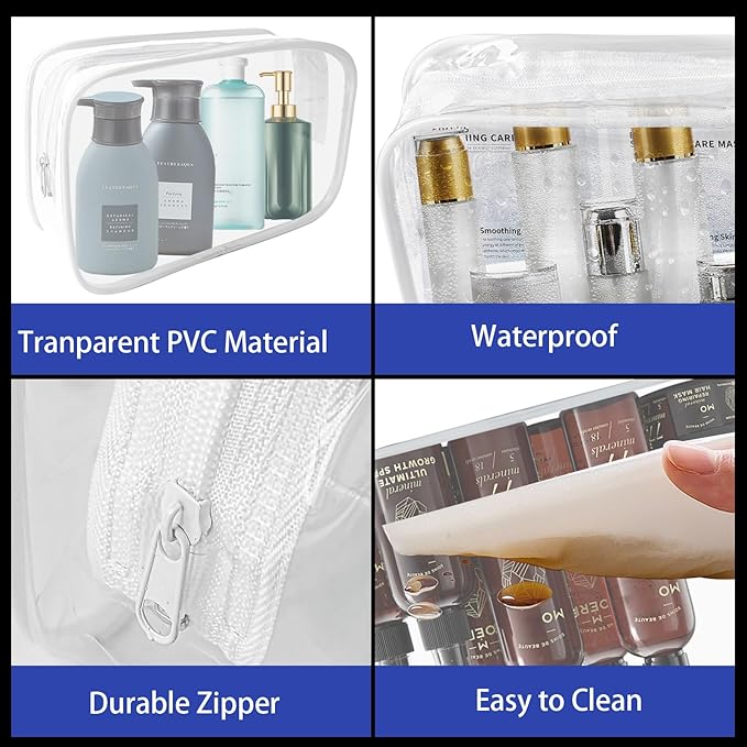- 【High Quality】Our toiletries bag are made of PVC material, transparent and waterproof, not easy to tear or break; So it is not easy to get wet and easy to clean. The reinforced seams prevent the bag from splitting easily, effectively reducing the risk of liquids leaking out from the bag.