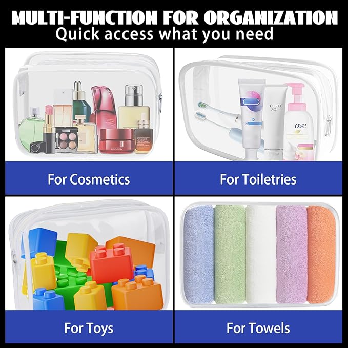 - 【Wide Application】Our transparent make up bags is best choice for your friend, and family for Christmas,Valentine's Day, bachelorette party, Wedding or Business. They can be applied as a storage bag, waterproof bag, gift bag, jewelry bag, general packaging bag, daily necessities packaging bag, you can use them to store a wide range of items, such as make-up brush, towels, toys and more, making your everythings neat and orderly.