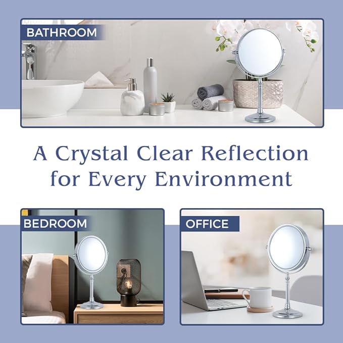 - 360-DEGREE SWIVEL: Our mirror does a full 360 degree twirl. Whether you’re sitting or standing, you can easily find the perfect angle. No more awkward bending to see yourself!