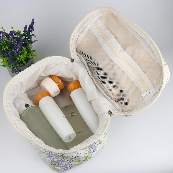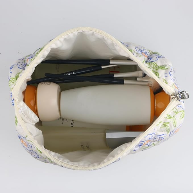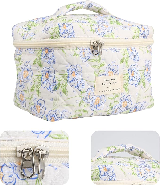 - 【Premium Material】This quilted cotton makeup bag is crafted from high-quality cotton, ensuring it is lightweight, durable, and soft to the touch.