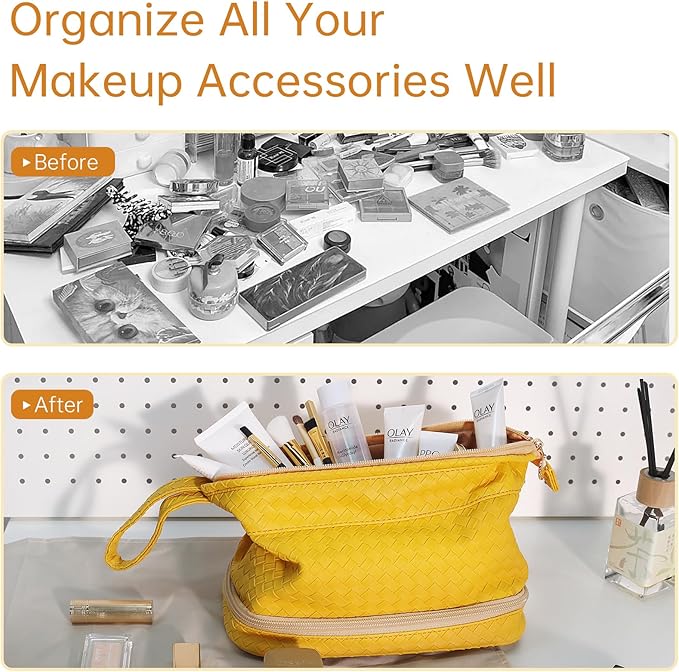 - Smart Multi Functional Design:Functions as both a cosmetic organizer and toiletry bag. Ideal for daily use, vacations, or business trips - keeps makeup, brushes, and skincare products neatly separated