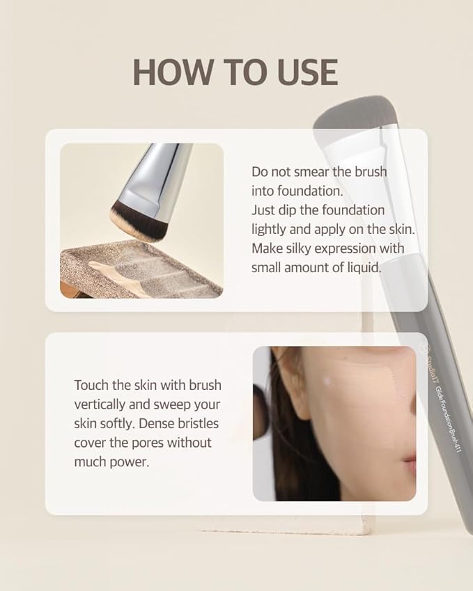 - [How to Use] - Do not put the brush into the foundation deeply. Dip the brush;s tip lightly on the foundation. Touch your skin vertically and sweep softly for thin spread.