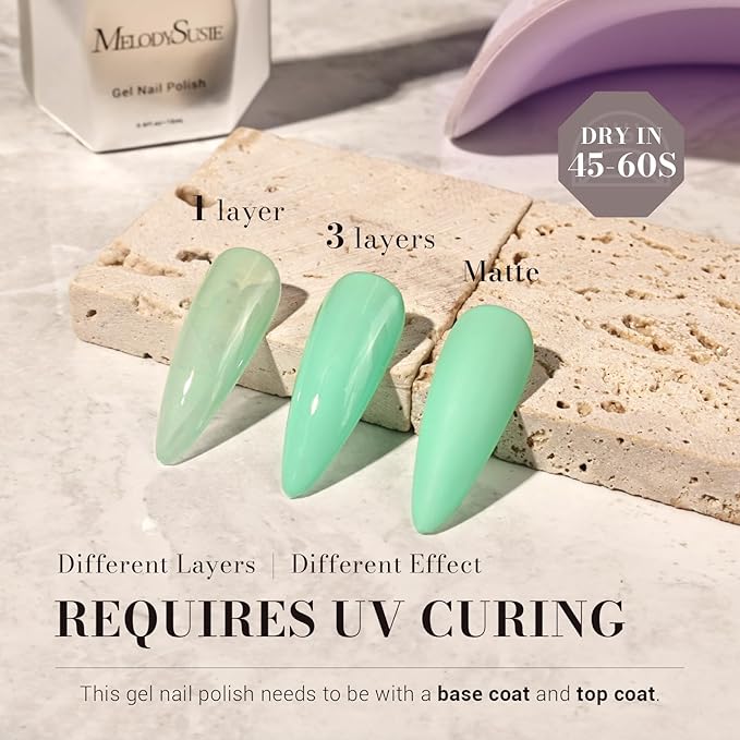 MelodySusie Mint Green Gel Nail Polish,0.5fl oz Nails Soak Off UV LED Bright Green Gel Polish Gift for Women Nail Art Manicure Salon DIY Nail Design Decoration at Home-1651