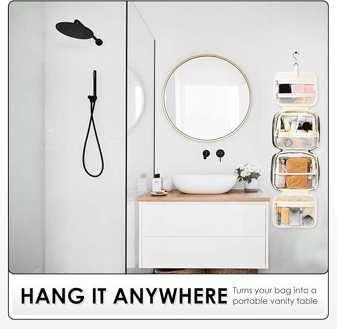 - Hanging Design: Our makeup organizer bag can stow-away 360-degree swivel non-slip metal hook for versatile hanging options; cosmetic bag carry handle doubles as its hanging strap; two-way zipper closure for quick access