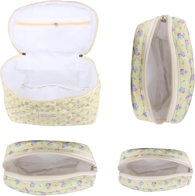 - 【Premium Material】This quilted cotton makeup bag is crafted from high-quality cotton, ensuring it is lightweight, durable, and soft to the touch.