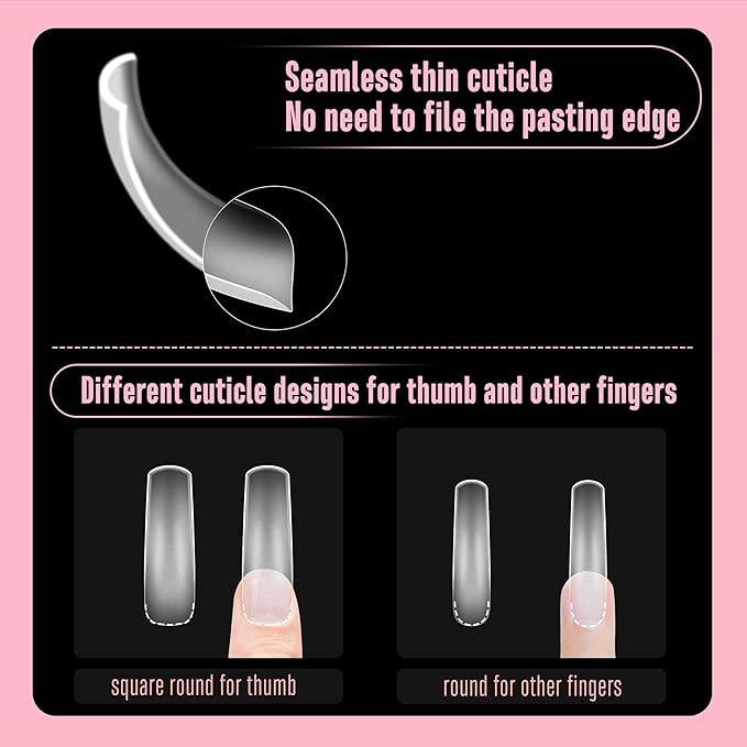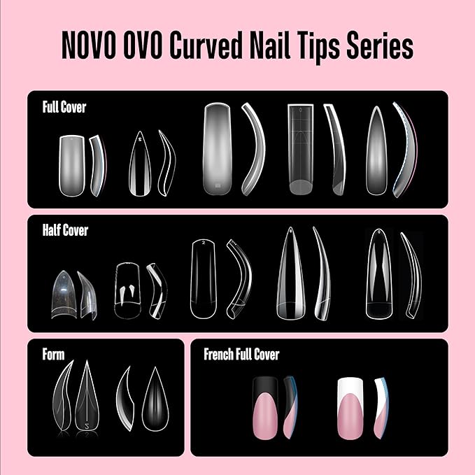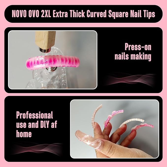 NOVO OVO Halloween Curved Nail Tips Press on Full Cover, Extra Curve Square Gel x Thick Long XL XXL Acrylic Fake Nails Extension kit, Clear Pre-etched French False Nail 12 Sizes 240pc QUEEN SQUARE PRO
