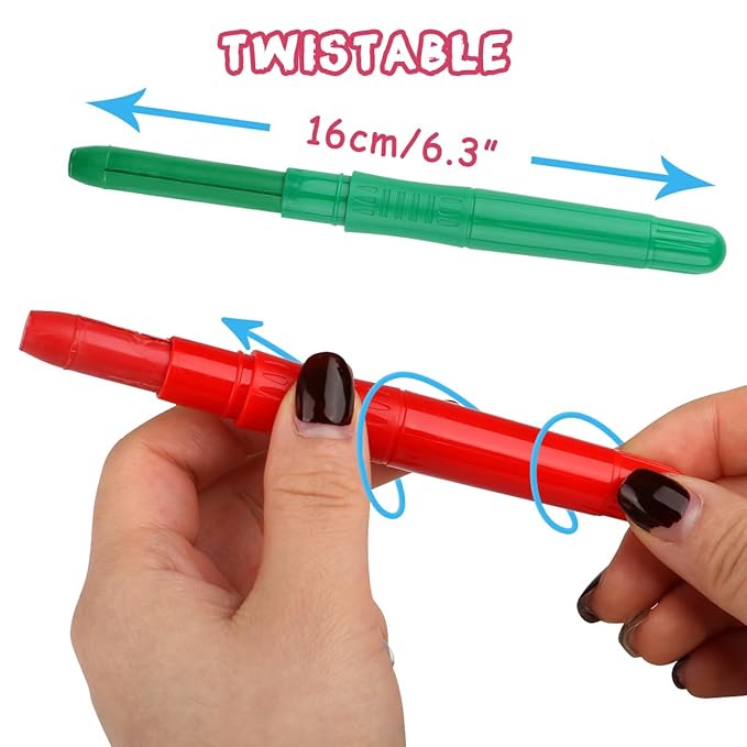 - Bowitzki Face Body Crayons set include 12 colors twistable crayons with storage box.