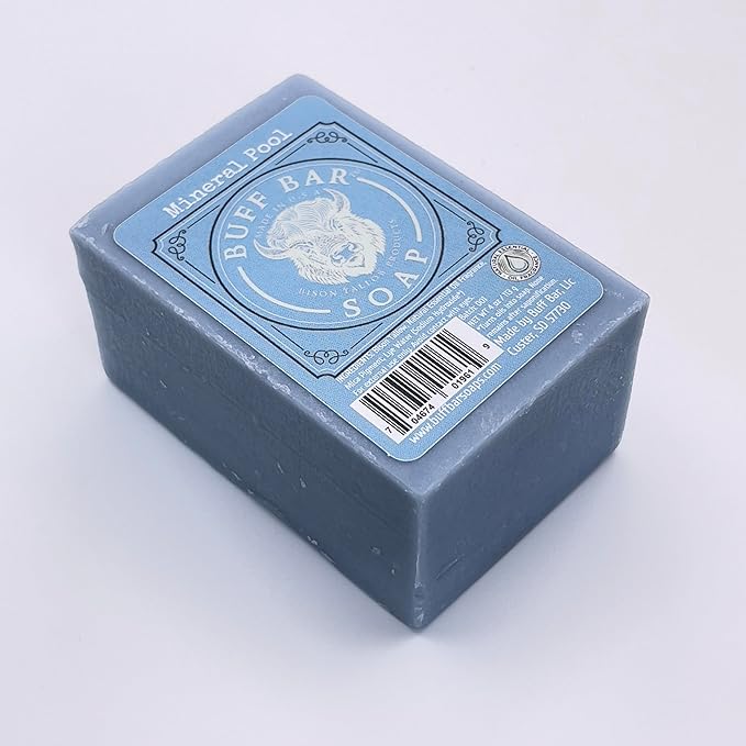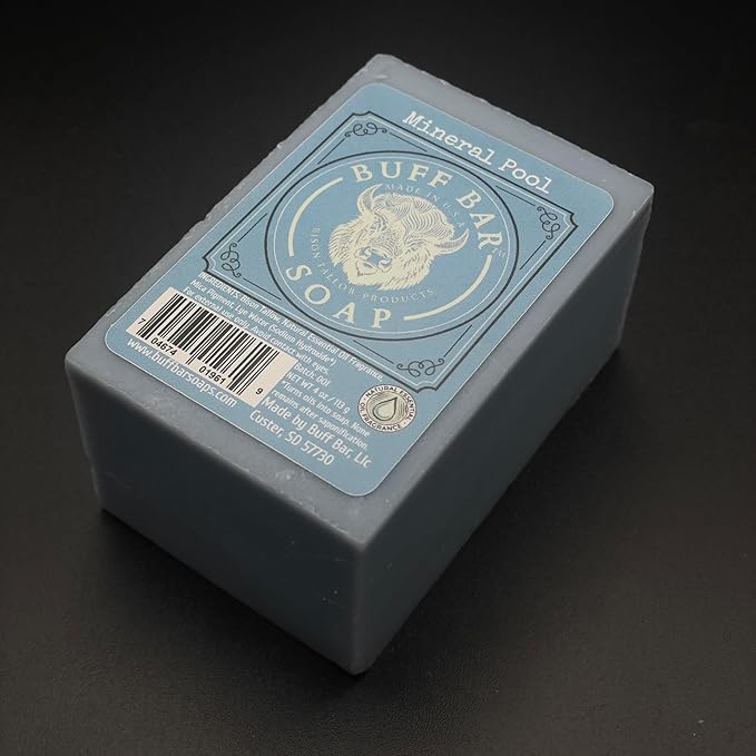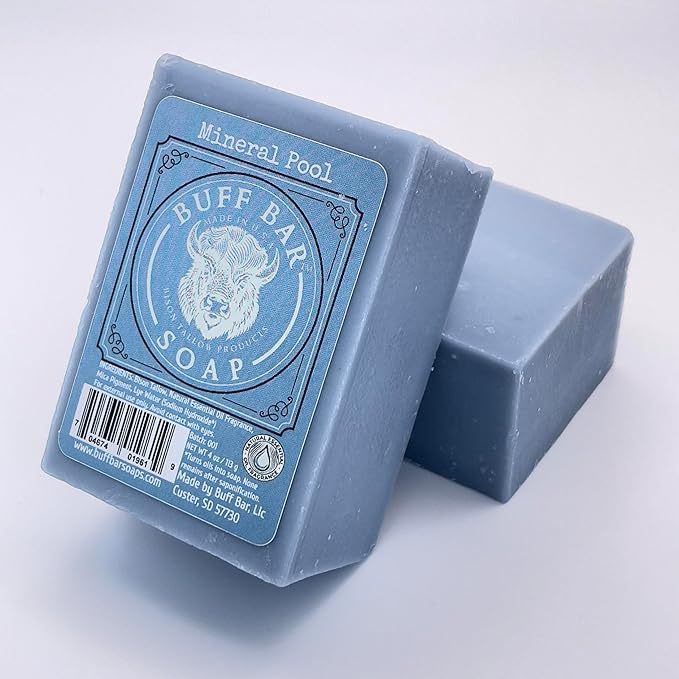 Bison Tallow Buff Soap Bar, Mineral Pool, (2 pack) - Scents of Himalayan Sea Salt, Moss, & Freesia - Cleans, Moisturizes, Soothes, Hydrates - No Chemicals or Preservatives