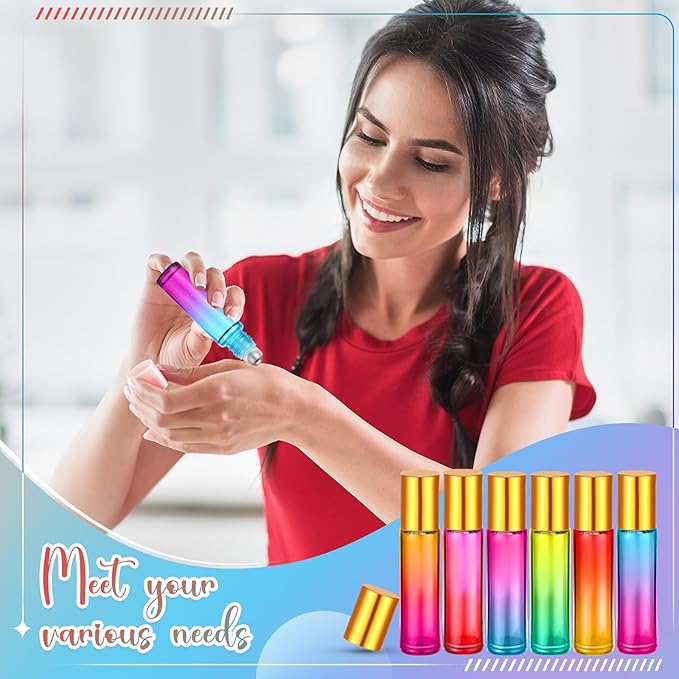 - Complete Accessories: with 5 funnels, the roll on bottles for essential oils can be easily refilled, these accessories can help you DIY your own beauty products, such as perfume; Small dimension makes gradient color roller bottles easy to carry, very suitable for travels