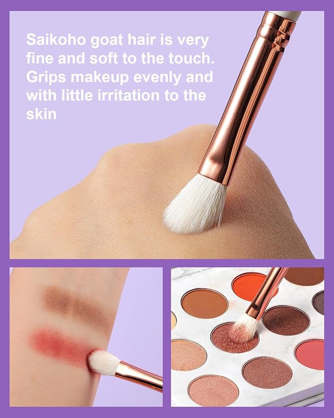 - ·Feel the Softness and Quality of Saikoho Goat Hair - Made from natural goat hair, this smudge brush is gentle on your skin and durable enough to last. The Saikoho goat hair is great enough to pick up and distribute the right amount of pigment, giving you a smooth and even finish.