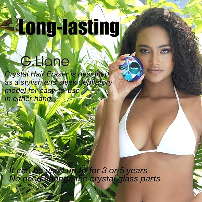 - Painless and Natural Hair Removal:G.Liane crystal hair removal device is a natural alternative to shaving,waxing and expensive laser hair removal methods.Made by advanced nano glass techniques,painless and effective to remove the unwanted body hair in small circular motions.Visible salon results in seconds.