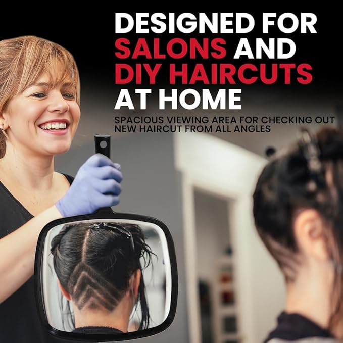 MIRRORVANA Hand Mirror with Ergonomic Handle - Handheld Mirror for Makeup, Home Haircuts, Dental and Barber Use, 8” x 11” (Black)