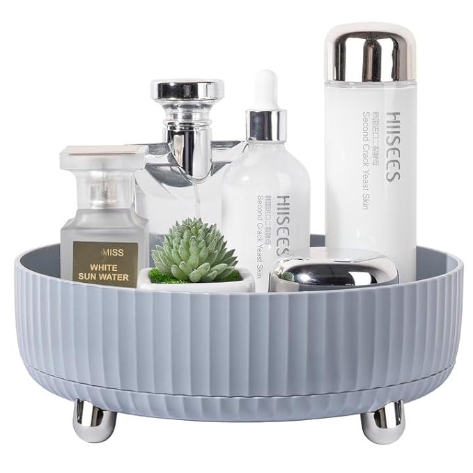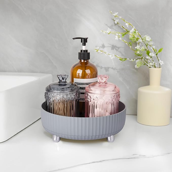 Anyoifax Makeup Perfume Organizer Tray 360 Degree Rotating Lazy Susan Skincare Lotion Organizer Spinning Cosmetics Storage for Dresser, Vanity, Bathroom Countertop, Small Grey