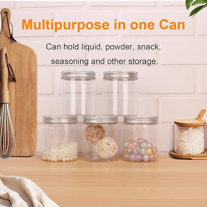 - 【Versatile Storage Options】:Our Clear plastic jars are designed to provide versatile storage solutions these 8 oz Plastic jars can accommodate a wide range of products for various items, including DIY crafts, cosmetics, kitchen ingredients, and more.