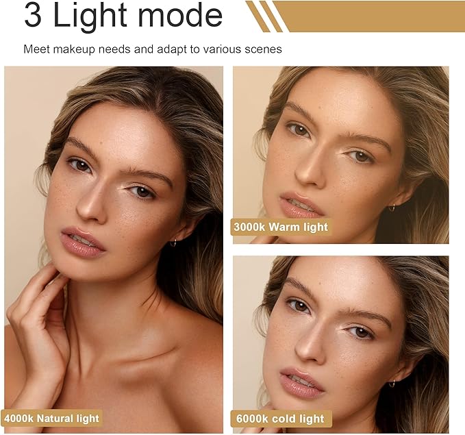 - 【Rechargeable Makeup Mirror-3000mAh Battery】 Black Vanity mirror with lights, lighted makeup mirror wall mounted has a built-in 3000mAh rechargeable lithium battery. Large capacity built-in lithium battery provides longer service life, so you don't need to replace the battery frequently. illumination up to 800 lux, color rendering index over 95, provide stable and soft anti-glare light source. It can providing 3color(white, warm, cold light) with one key and dimming to find the best brightness.