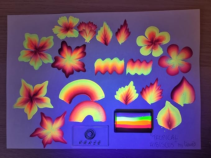 - VIBRANT BLACKLIGHT REACTIVE POPPING NEON COLORS: Kraze FX Wish Domed Split Cake features: Neon Blue, Neon Yellow, Neon Orange, Neon Pink. Kraze FX Neon Cake is high quality, black light reactive color that works great for amazing effect under blacklight or neon light. The wax based split cakes are perfect for all aspects of face and body painting such as colorful blending and shadowing effects. The extremely durable formula offers a smooth, solid coverage.