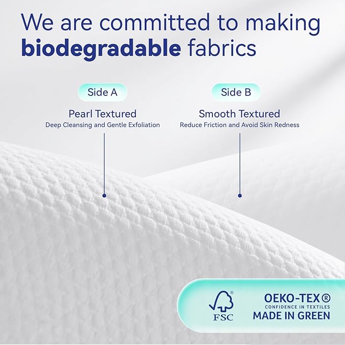 - [ Super Soft Disposable Face Towels ] Ditoi's ultra-thick, two-sided towels are softer, safer and more absorbent than traditional cloths.Our XL towelettes feature a gentle smooth side for everyday cleansing and a textured pearl side for deeper exfoliation. With superior water retention and breathability, they leave your skin feeling refreshed, not irritated.