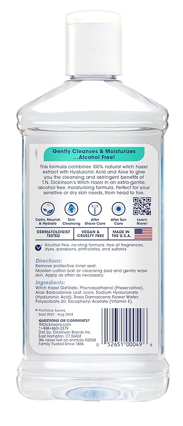 - ALCOHOL-FREE, GENTLE FORMULA: Enjoy the trusted cleansing power of T.N. Dickinson’s Witch Hazel with an extra-gentle, alcohol-free formula that won’t sting or dry out your skin.