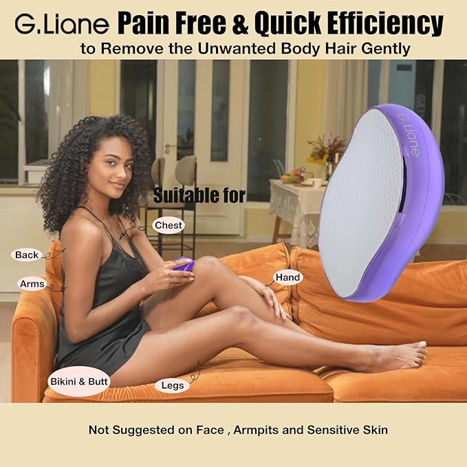 - Skin Friendly and Travel Friendly:G.Liane magic physical crystal epilator is made by advanced nano crystallized techniques,no sharp blades,no irritation,totally skin friendly for all skin types and multi body parts.But not suggested on face,armpits and sensitive skin.Small handy size and No battery-powered makes hair removal portable and convenient.You can enjoy silky smooth anywhere anytime.