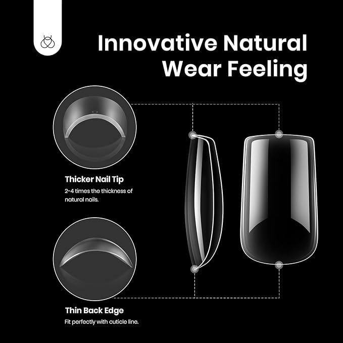 - 【Premium Quality Nail Tips】:Crafted from premium PMMA, beetles XS short square fake nails tips offer an innovative natural wear feeling.The thickness of each nail tip is 2-4 times more than natural nail, providing sturdy and durable extended nails. Even if bent, it retains its original form without leaving marks, ensuring seamless nail application and design.
