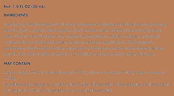 - MOISTURIZING & NOURISHING: The pigmented liquid formula is created with sunflower seed oil and antioxidants like Vitamin E, plus marula oil and raspberry seed oil.