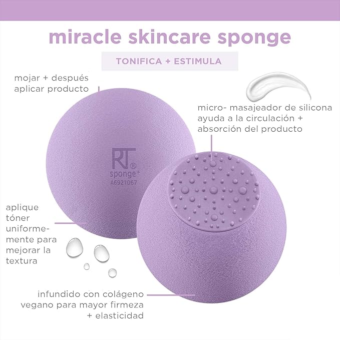 Real Techniques Miracle Skincare Sponge, Beauty Sponge Infused with Vegan Collagen, Reusable for Facial Serums & Moisturizers, Purple, Vegan & Cruelty Free, 2 Count
