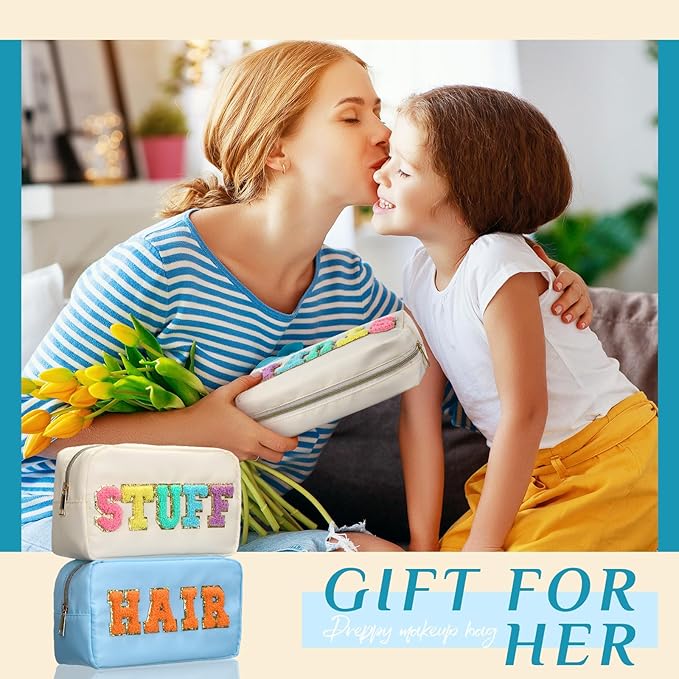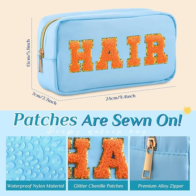 • Reliable to Apply: preppy makeup organizer with chenille letter patch is mainly made of nylon material, which is waterproof to some extent, with sponge inside to better prevent your belongings from scratching; They are nylon pouch with zipper, easy to open and close smoothly, not easy to rust