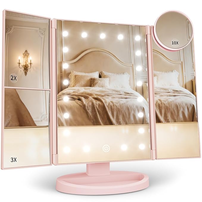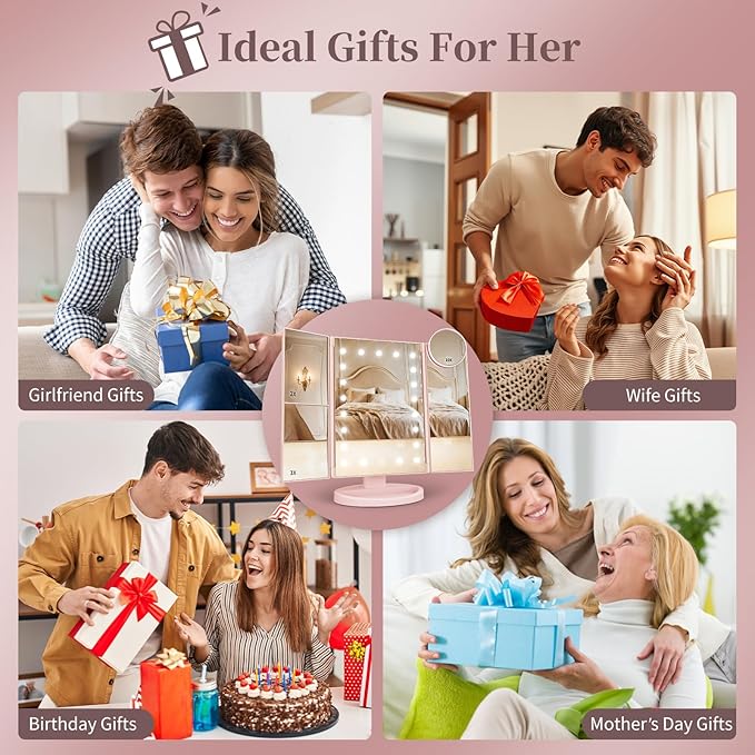 • Sleek, Compact Design: With a modern finish, stable base, and foldable trifold design, this vanity mirror looks elegant on any vanity while staying compact and easy to store.Ideal for Valentine’s Day, Mother’s Day, birthdays, anniversaries, Christmas, or just because. Functional yet beautiful, HUONUL makeup mirror vanity with lights is a thoughtful gift for makeup lovers, moms, wives, girlfriends, or anyone ready to upgrade from a cheap, flimsy mirror.