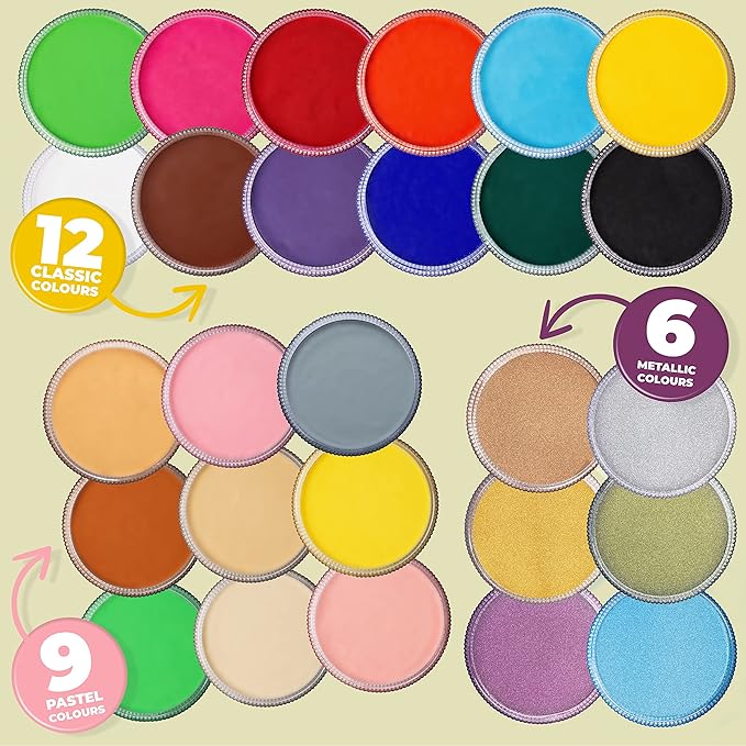 - β π¦πππ ππ’π₯ πππ π¦πππ‘ π§π¬π£ππ¦: Perfect for all skin types even with sensitive skin, our water-based face & body paint for skin are fully EEC, UK & US compliant, skin safe, and crafted with non toxic, cosmetic-grade, hypoallergenic, paraben-free, fragrance-free ingredients. As with all cosmetics, we advise that a small skin patch test is done before applying as everyoneβs skin is different. To remove, simply wipe the face with a damp cloth.