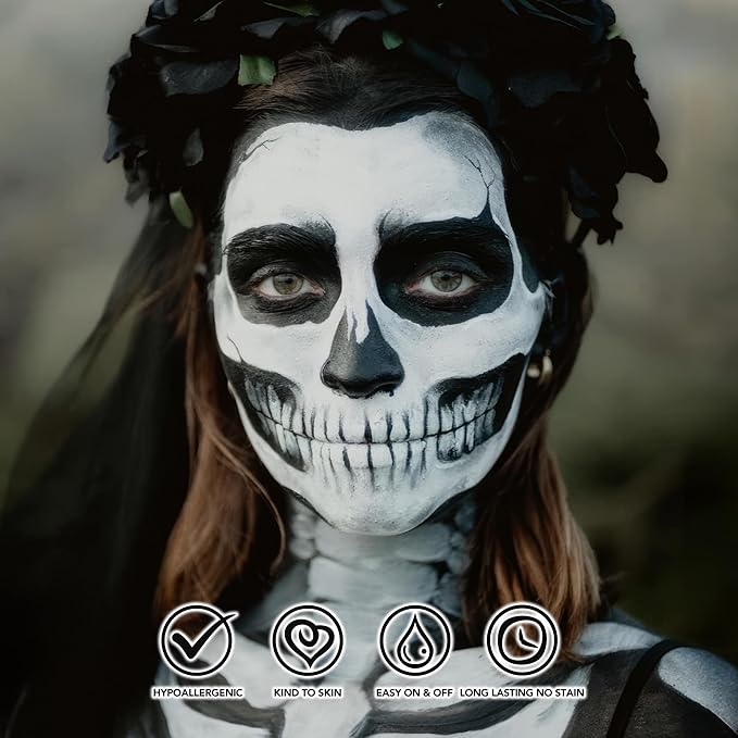 - HIGHLY PIGMENTED & GOOD COVERAGE: Creamy Water-based formula face and body paint has high pigment and great coverage,a tiny small goes a long way with full coverage on the face or body.Water-based formula can be customized to your desired consistency, making it ideal for creating a wide range of looks.