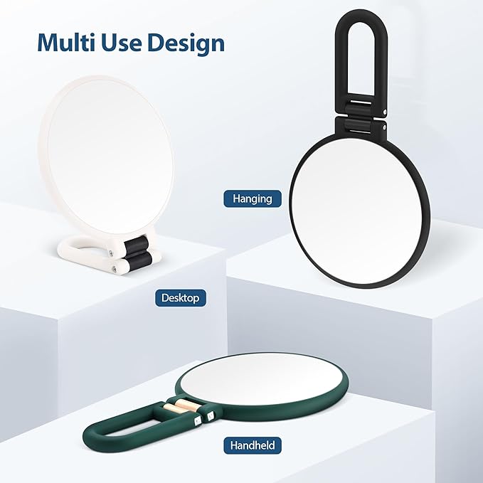 - 360°Rotating Handheld Mirror: This multi-purpose design handheld mirror with handle features a flexible stand that rotates 360 degrees and can be adjusted to different angles to meet our different needs. Depending on the usage scenario it can also be used as a handheld mirror, tabletop mirror and hanging mirror