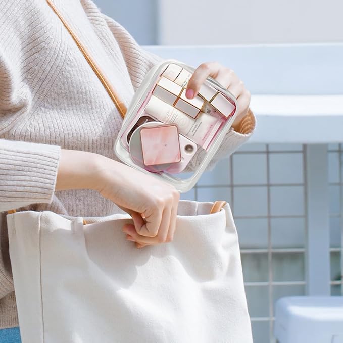 4 Pack Clear Makeup Bags, TSA Approved Toiletry Bag Car Organizer Travel Cosmetic Case Portable Travel Essentials Bags for Toiletries Clear Summer Beach Bag Carry on Airport Airline Compliant Bag