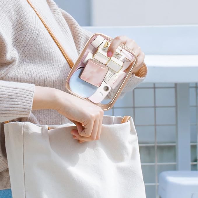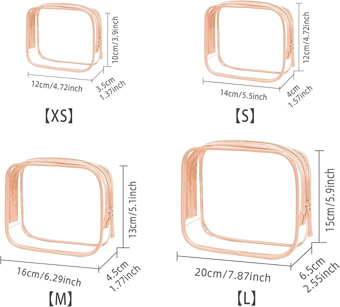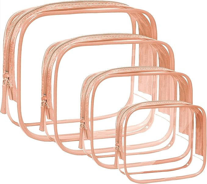 4 Pack Clear Makeup Bags, TSA Approved Toiletry Bag Car Organizer Travel Cosmetic Case Portable Travel Essentials Bags for Toiletries Clear Summer Beach Bag Carry on Airport Airline Compliant Bag