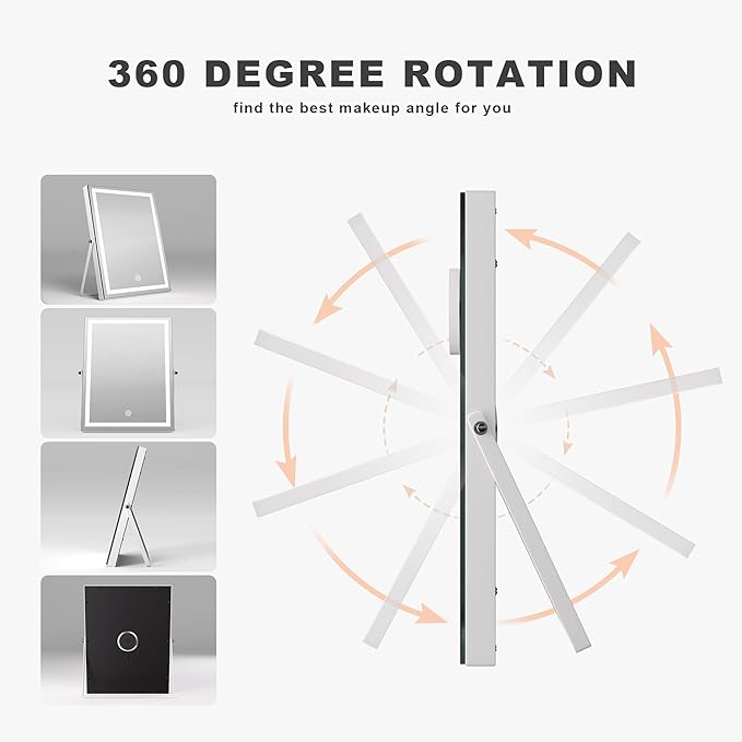 Hasipu Vanity Mirror with Lights and Bluetooth Speaker, 10.6" x 13.8" LED Makeup Mirror with 10X Magnification, Smart Touch 3 Colors Dimmable, Brightness Adjustment, 360° Rotation, White