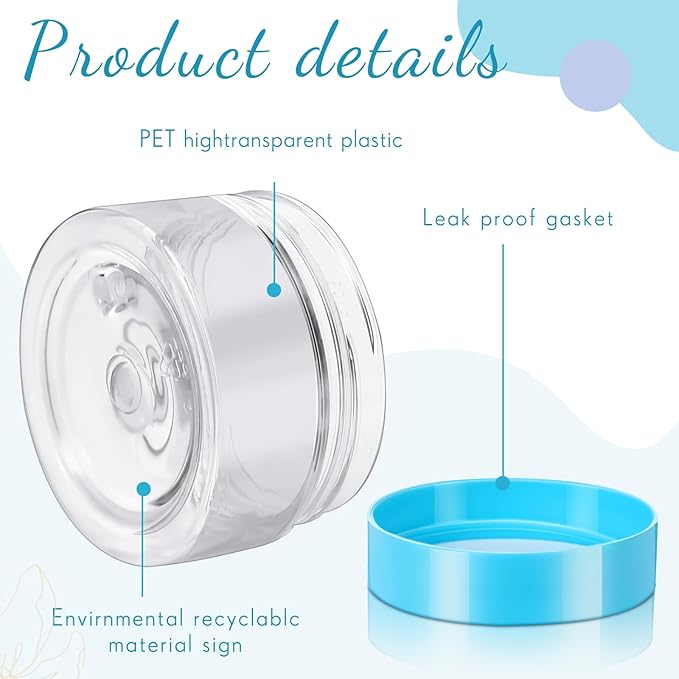 - Quality Material: the 1 oz plastic jars with lids are made of quality clear plastic, without odd smell, does not contaminate your skincare products, stable, high temperature resistance, a blue plastic cover with lid, sealed storage and leak proof