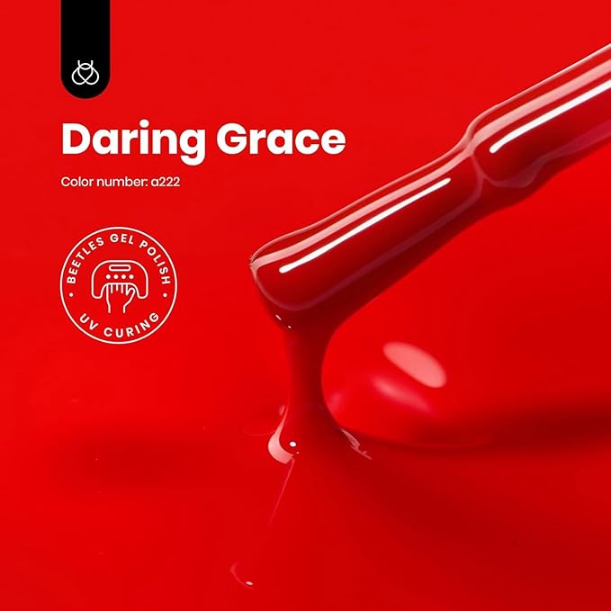 Beetles Red Gel Nail Polish, 15ml Red Color Soak Off UV LED Gel Polish, Nail Art Design Daring Grace Manicure Salon DIY Home Colorful Bottle Gifts for Women