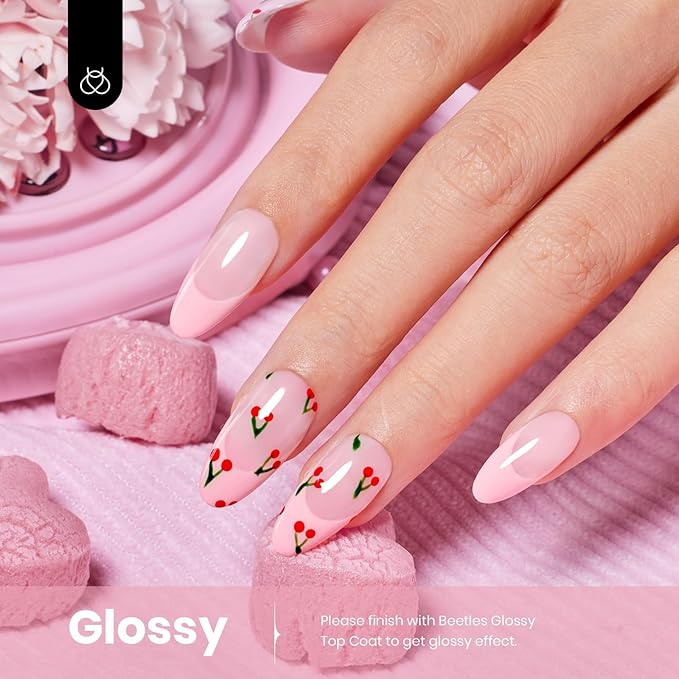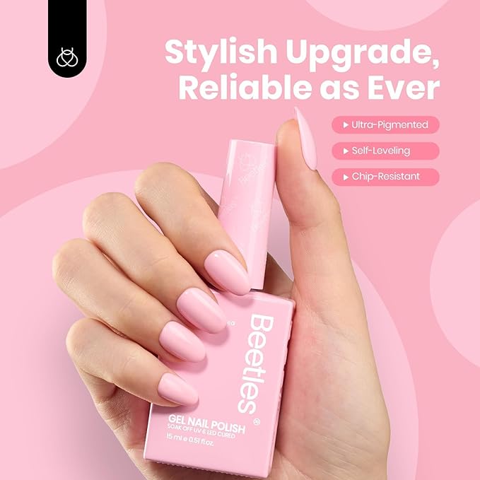 Beetles Pink Gel Polish - Fairy Floss 15ML/0.51Fl Oz, Pastel Light Pink Gel Nail Polish, Soak Off UV LED Lamp Nail Art, Long-Lasting Manicure Salon DIY Home Spring Valentines Nails - Gifts for Her