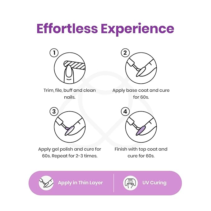 - ENVIRONMENTAL AND HEALTHY - Rich color, middle consistency, self-evenly, no shrink and edge.This purple gel nail polish is UV gel. It is still sticky after curing. This item does not include a base&top coat, which needs to be purchased separately.