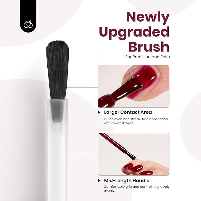 - 【Speed Curing with Uv/Led Lamp】The dark red jelly gel nail polish needs to be cured under the uv/led light. The average time for uv/led lights is 60-120 secs. It remains sticky after curing and must be used with a base coat and top coat! (Note:This item does not include a base&top coat, which needs to be purchased separately)