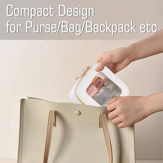 - 【Travel Essentials】The small clear makeup bag is clear TSA approved toiletry bag,it can be used to hold your mini beauty products,daily small essentials like lipstick, hair ties, jewelry, Air Pods, charging cords etc,it fits perfectly in your purse/work bag/backpack/tote bag or travelling bag,the transparent window helps you to access your must-have items easily.