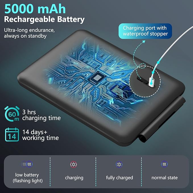 - Rechargeable: Built-in 5000 mAh rechargeable lithium battery, the shaving mirror for shower fogless can be used continuously for 2-4 weeks after a single charge. Blue indicator light blinks when the battery is low, please charge in time (including charging cable, excluding charger).