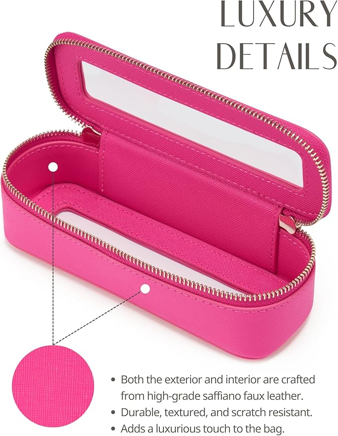 • [Slim Brush Makeup Bag] - This slim makeup bag is 7.5'' x 2.5'' x 2.1'' (19.1cm x 6.4cm x 5.3cm), ideal for storing makeup brushes and daily mini essentials like lip balms, hair ties, jewelry, Air Pods, charging cords, and medications. Slip it into your purse, backpack, everyday tote, or travel bag for convenient access to your essentials.