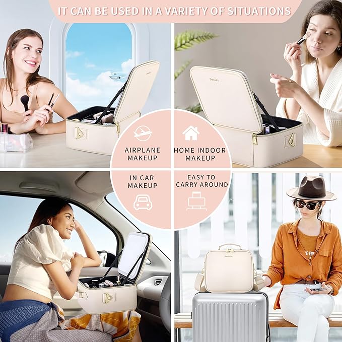 - 【Portable, Shock‑Resistant Cosmetic Train Case】Lightweight yet rugged design with anti‑wear, spill‑proof interior protects your cosmetics on the go—perfect for carry‑on or checked luggage.