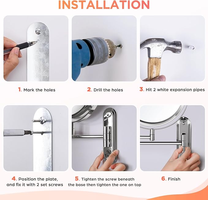 - 【1X/15X Wall Mirror】 Chrome color 1X/15X Wall mounted magnifying mirror. 15X allows you to see every detail of your face.