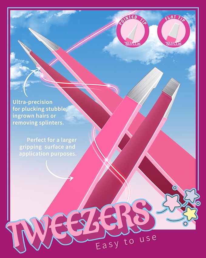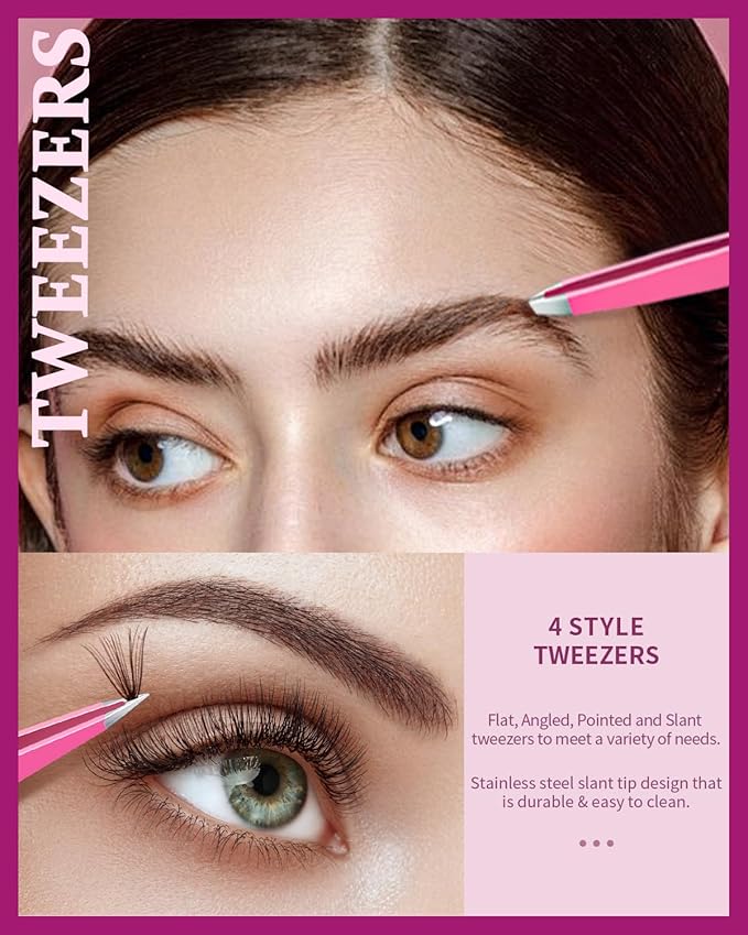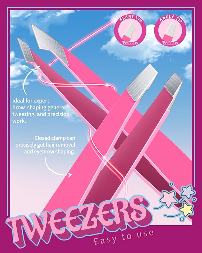 About This Value Tweezers Set: The 6pcs tweezers set come with 4pcs eyebrow tweezers(Flat, Angled, Pointed and Slant tweezers), 1pcs... Read more