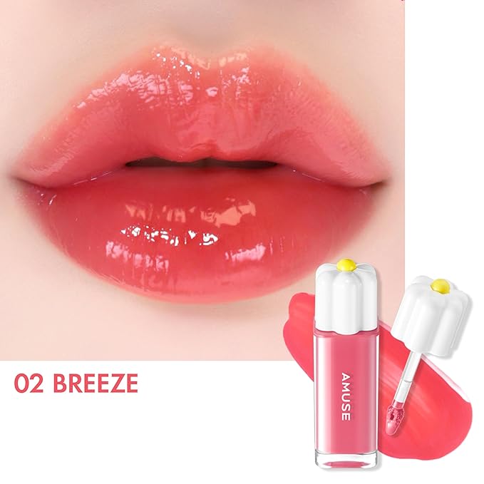 Amuse SEOUL Daisy Flower Dew Tint 02 BREEZE | 35% High-moisture Water Tint, Long-lasting, Vitamin E Acetate, Moisturizing, No Peel Off, Lip Treatment, Non Sticky, Korean Lip Tint for Dry Lips