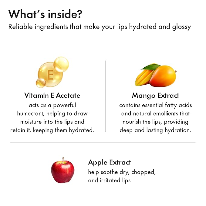 - *With a dewy freshness akin to flower water, our 35% high-moisture water tint. This tint revolutionizes heavy, glossy tints with its triple water-oil-water structure, boasting mango and apple extracts, plus vitamin E acetate for moisturized, healthy lips. Its allergen-free peach scent ensures effortless, worry-free daily use.