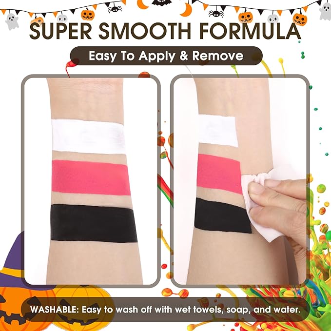 - 【Fast Drying & Long Lasting】Enjoy a seamless face painting experience with our fast-drying formula that won’t smudge or fade. Designed for bold and vibrant designs, it provides full coverage with a smooth finish, ensuring your look stays fresh throughout the day.Note: Washable but not waterproof.
