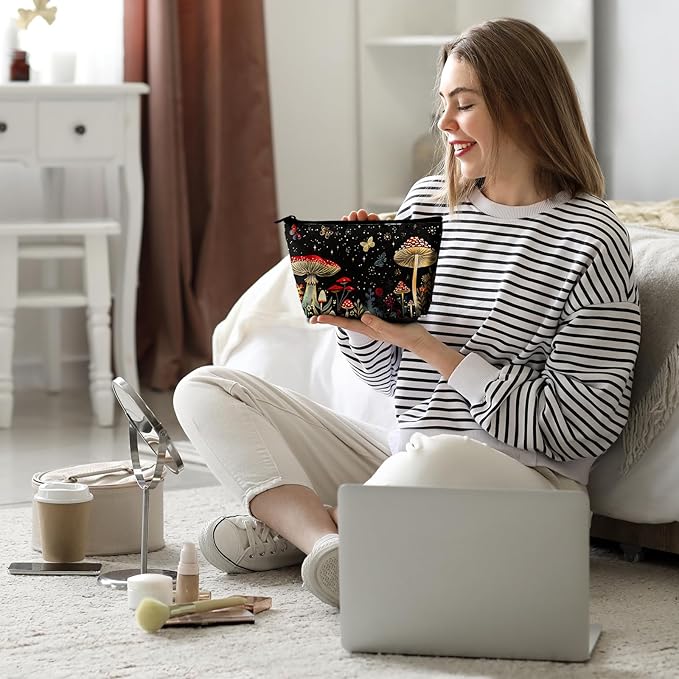 Mushrooms Makeup Bag Cosmetic Bag for Women,1Pcs Large Capacity Makeup Bags and 1Pcs Pencil Case Makeup Brushes Storage Bag Travel Toiletry Bag Organizer