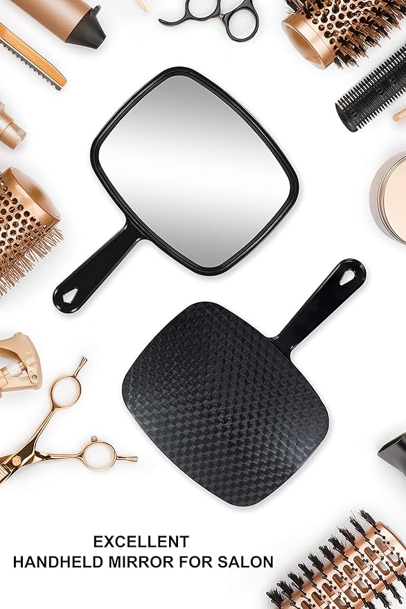 Hand Mirror, Barber Hairdressing Handheld Mirror with Handle for Salon, Square, Black, Medium,Pack of 3